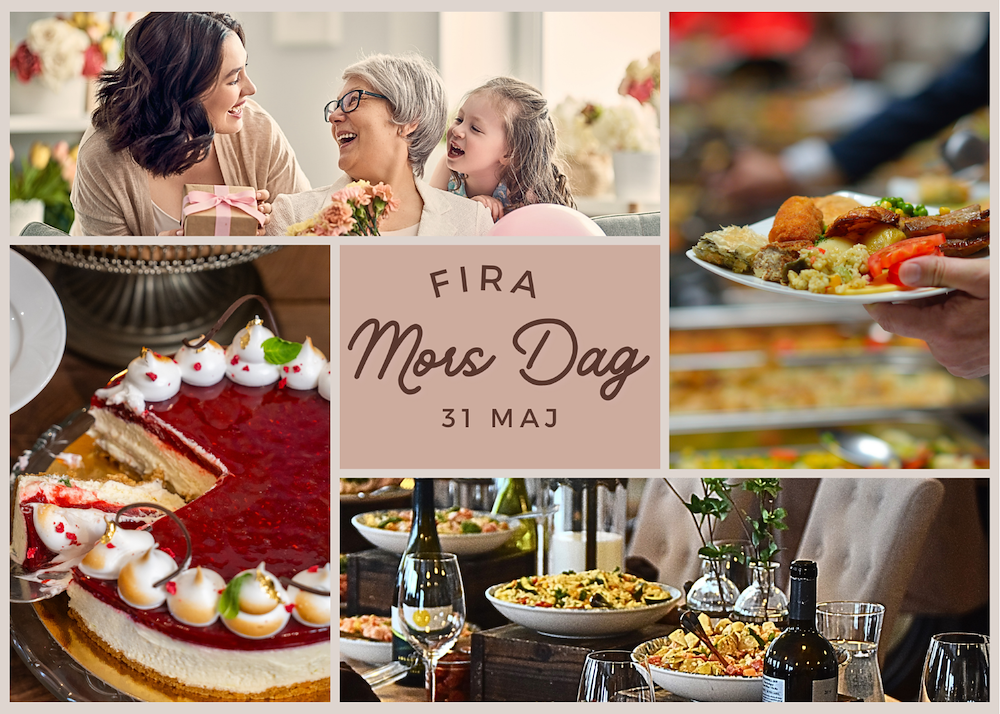 31 maj | 399:-/person | Vi hälsar er varmt välkomna att fira Mors Dag med en extra omtänksam och njutbar buffé, skapad för att hylla alla fantastiska mammor. Här väntar fräscha sallader, vällagade varmrätter, söta desserter och mycket mer – allt tillagat med de finaste råvaror och en stor dos kärlek.
