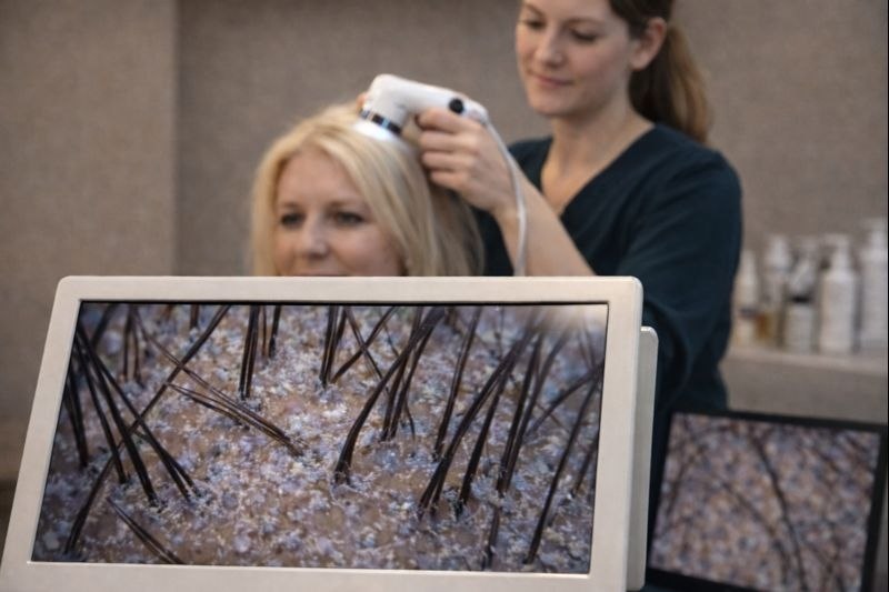 đ Analys av hĂ„rbotten med förstoringskamera â ger en tydlig bild av skalpens behov och anpassar behandlingen för bĂ€sta resultat