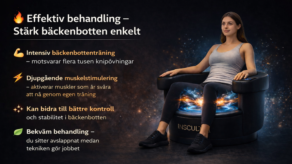 🔥 InSculpt Chair är en modern behandling som stärker bäckenbottenmusklerna och kan bidra till bättre kontroll i vardagen.